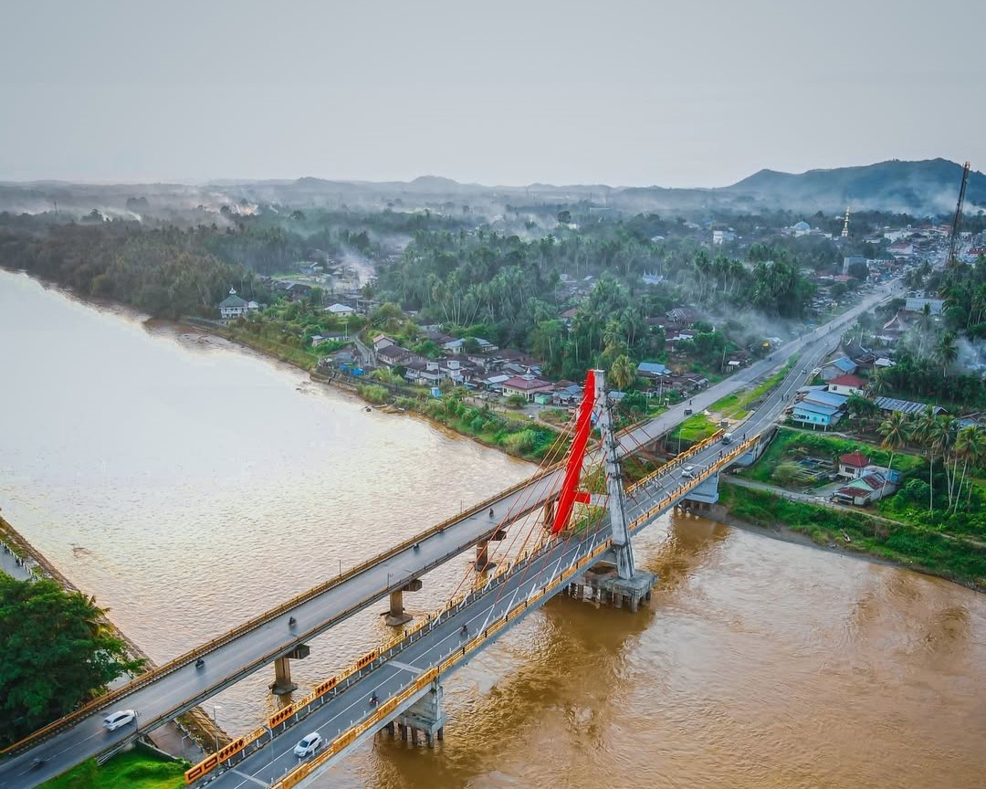 Jembatan Sungai Dareh menjadi salah satu ikon modern Dharmasraya, dikenal juga sebagai “Golden Gate”-nya Sumatera Barat.